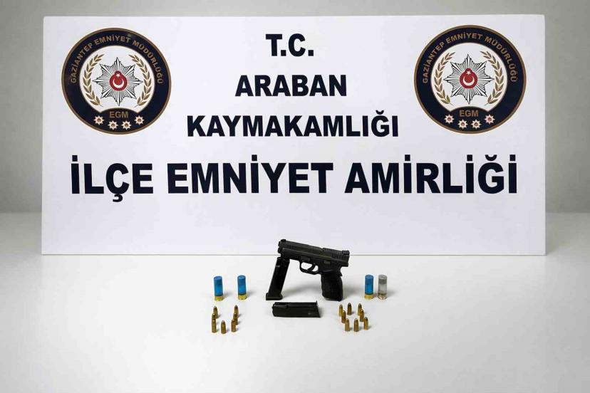Araban İlçe Emniyet Amirliği ekipleri, ilçede belirli noktalarda yol kontrol faaliyeti icra etti. Ekiplerin ilçe merkezinde yaptığı yol kontrolünde durdurulan şüpheli bir araç arama yapıldı. Aramalarda, 1 adet ruhsatsız tabanca, 2 adet şarjör ve 15 adet mermi ele geçirildi.