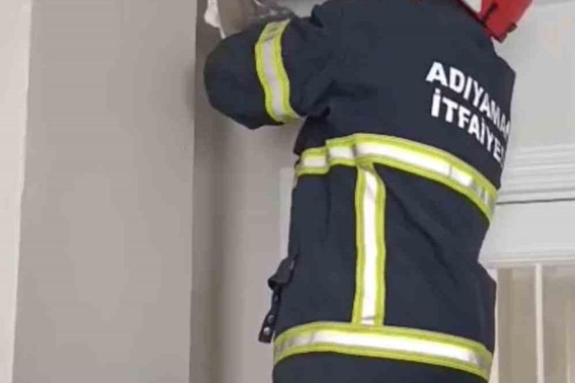 Olay, Adıyaman merkez Altınşehir mahallesinde bir bağ evinde meydana geldi. Ev sahibi bağevine geldiğinde odanın asma tavanından ses duydu. Yavru kedi seslerinin asma tavan içinden geldiği fark eden ev sahibi durumu itfaiye ekiplerine bildirdi. İtfaiye ekipleri, asma tavanın bir kısmını delerek anne kedi ve 4 yavrusunu sıkıştıkları yerden çıkarttı. Anne kedinin havalandırma boşluğundan asma tavana girdiği ve orada yavru kedileri dünyaya getirdiği ifade edildi. Kurtarılan yavru kediler Adıyaman Belediyesi Veteriner Müdürlüğüne götürüldü.