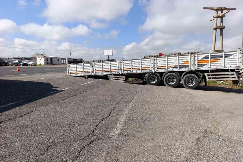 Adıyaman’da, çekicisinden kopan tır dorsesi yolu trafiğe kapattı.