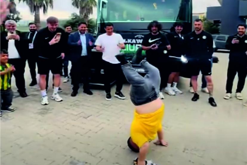 Tesislerde Amigo Ahmet'in şovu vardı. Araçta çalan düğün havası eşliğinde oynayan Amigo Ahmet Ahmet Kaysı'ya (45) futbolcular alkışlarla eşlik etti. Bir ara oyununa ara veren Amigo Ahmet, Teknik Direktör Taner Taşkın'ın elini öptü. Daha sonra takla at isteğini kırmayan Ahmet'i bugün cezalı olduğu için oynayaman Orhan Nahırcı kaldırdı.