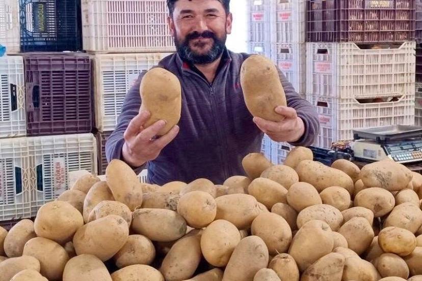 Manisa’nın Sarıgöl ilçesinde her hafta cuma günü kurulan halk pazarında satışa sunulan devasa patatesler vatandaşların dikkatini çekiyor. Tanesi 800 ile 850 gram arasında gelen patateslerin tek başına dört kişilik bir ailenin yemek ihtiyacını karşılayabildiği belirtiliyor.