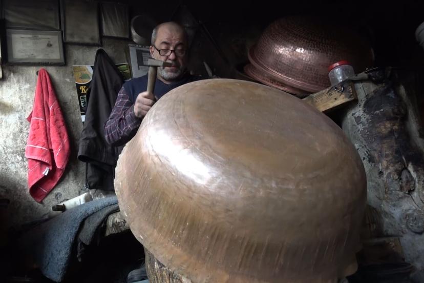 Dövme bakır kazanlar geleneksel yöntemlerle hazırlanıyor