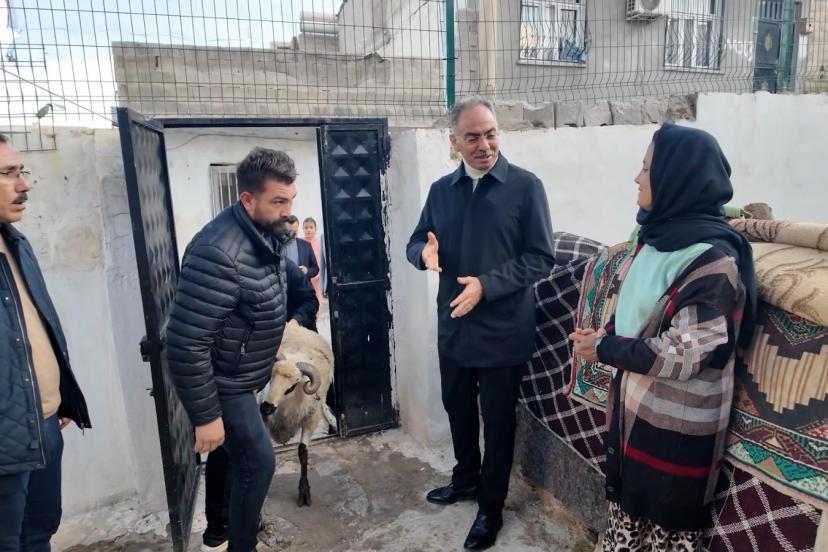 İhtiyaç sahiplerine dağıtılmak üzere temin edilen 25 bin adet kuru gıda kolisi, 400 adet kesimlik canlı küçükbaş hayvan ve nakit desteği ile aileleri ziyaret etmeye devam eden Eyyübiye Belediye Başkanı Mehmet Kuş, maddi manevi her türlü ihtiyaçlarında yanlarında olduğunu ifade ederek, dua talep etti.