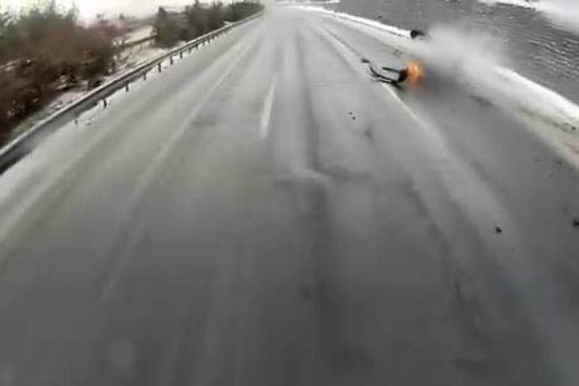 Diyarbakır - Şanlıurfa karayolunda gizli buzlanma oluşan yolda hız yapan sürücü, direksiyon hakimiyetini kaybedince duvara çarptı. Çarpma sonrası araç alev alırken, kaza güvenlik kameralarına yansıdı