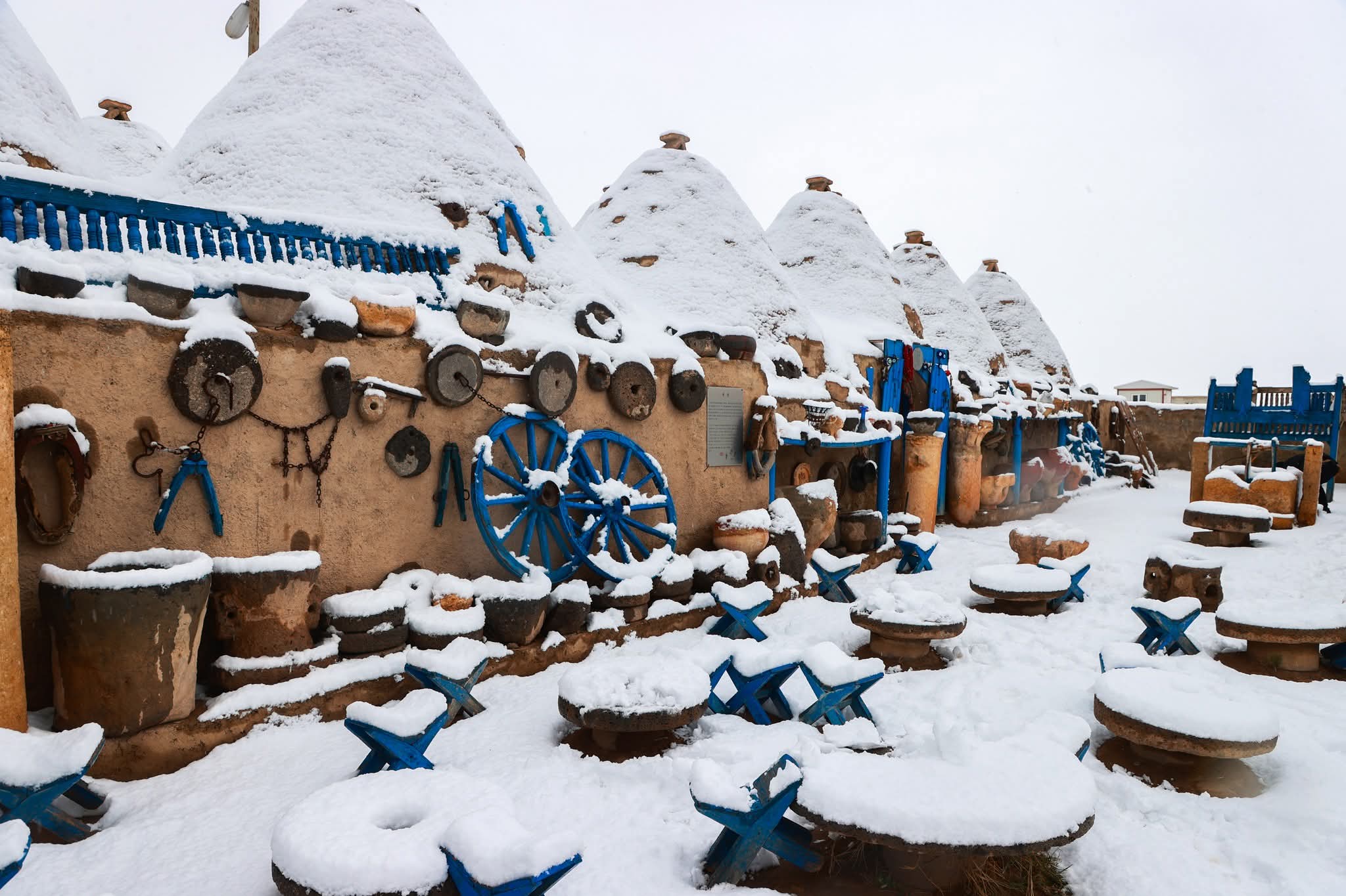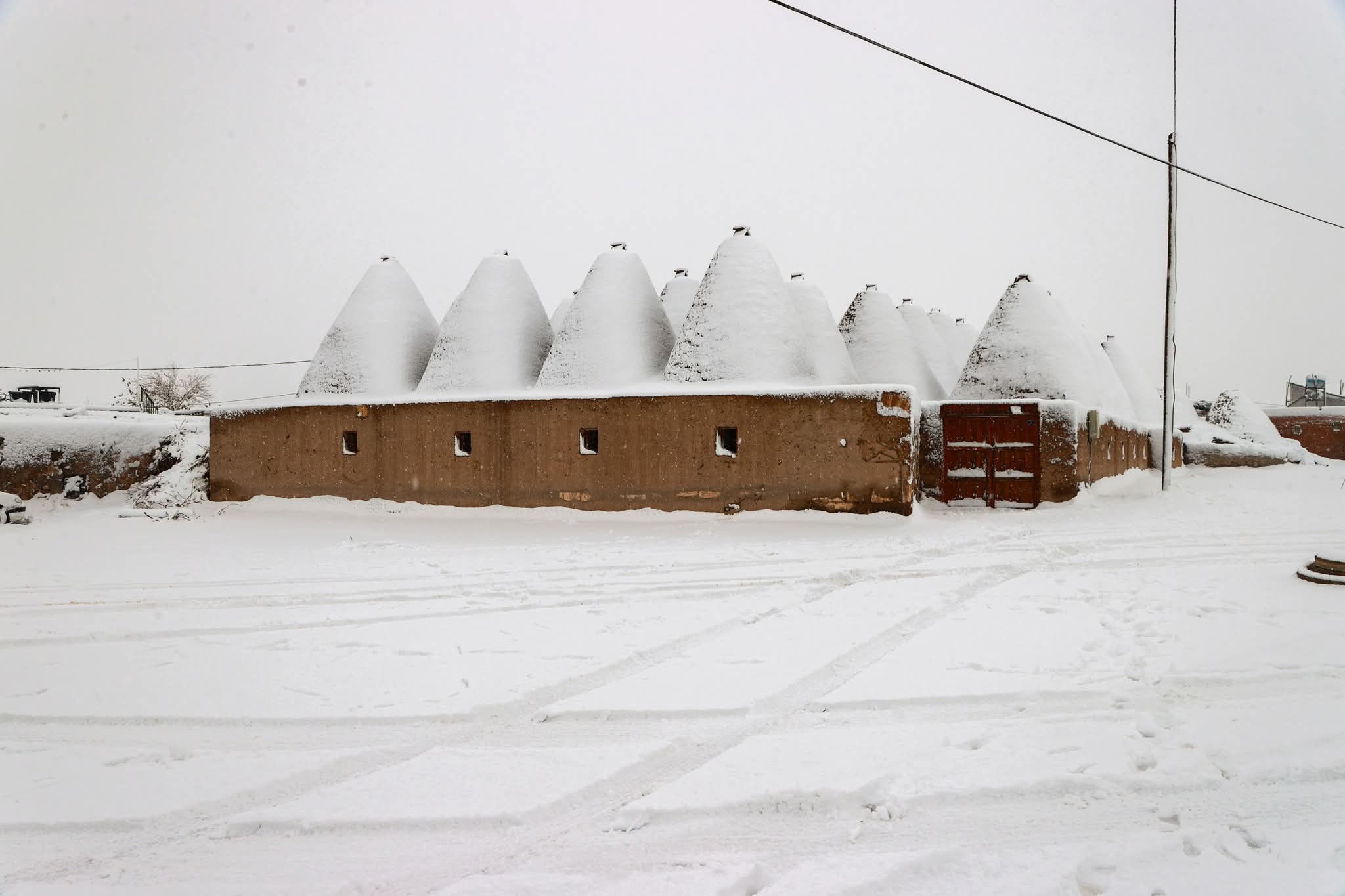 Şanlıurfa'nın tarihi ilçesi Harran'da etkili olan kar yağışı, ilçeyi adeta bir kış masalına çevirdi. Gün boyu aralıklarla devam eden yağış, özellikle tarihi ve manevi değeri yüksek noktalarda kartpostallık manzaralar oluşturdu.