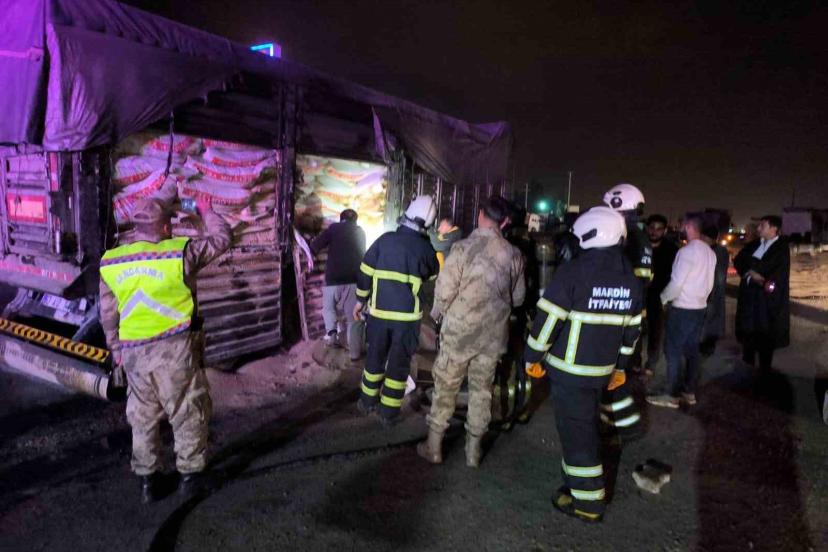 Mardin’in Kızıltepe ilçesinde hayvan yemi yüklü tırın dorsesinde çıkan yangın söndürüldü.