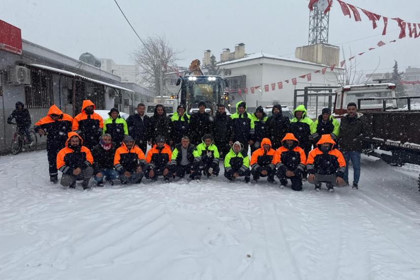 Hilvan Belediyesi karla mücadelede sahada