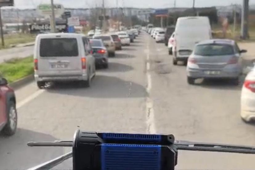 Diyarbakır’da sürücüler, bir ihbara giden itfaiye ekiplerine "fermuar" sistemiyle yol verdi.