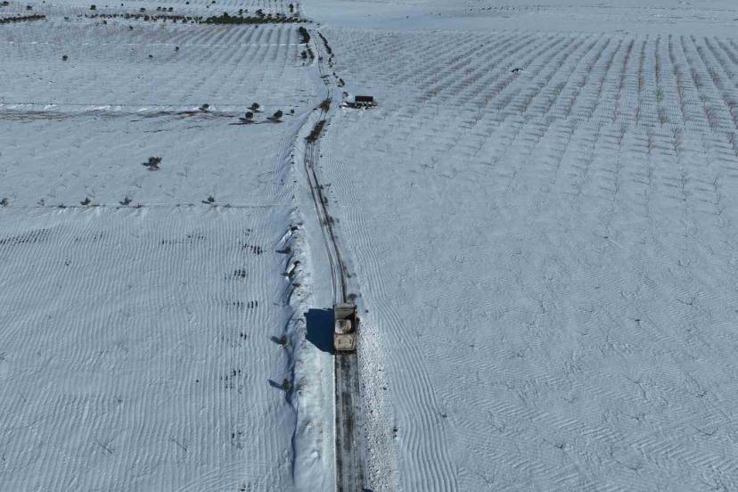 Zorlu kış şartlarına rağmen sahadan ayrılmayan ekipler, çalışmalarını sürdürüyor.