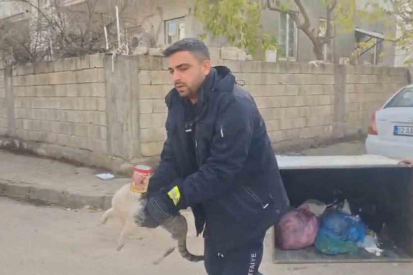 Adıyaman’ın kent merkezinde konserve kutusuna sıkışan bir kediyi fark eden vatandaşlar durumu itfaiye ekiplerine bildirdi. Kısa sürede olay yerine gelen itfaiye ekipleri kediyi sıkıştığı konserveden kurtardı. Kurtarılan kedi daha sonra serbest bırakıldı.