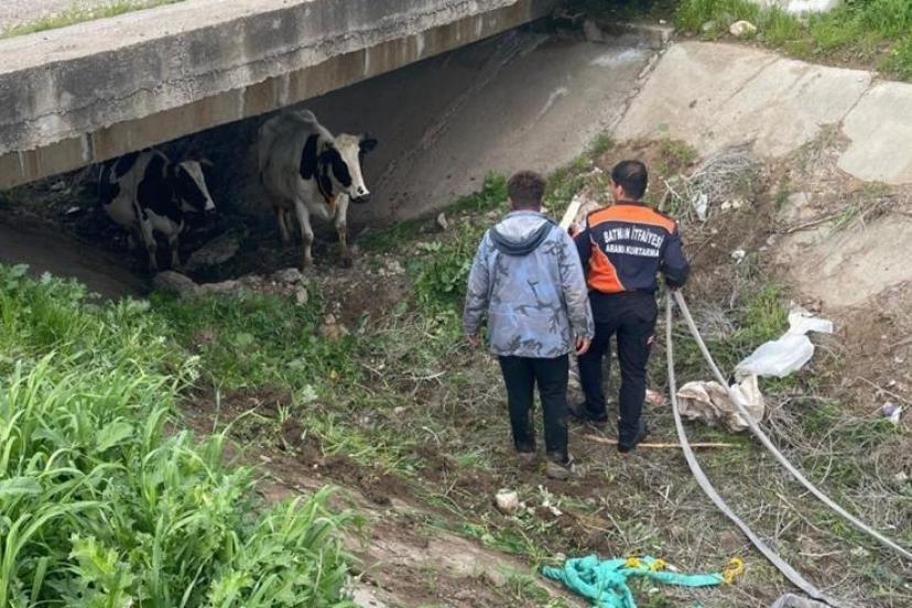 Batman’da kaybolan iki inek, itfaiye ekiplerinin yürüttüğü çalışma sonucu köprü altında bulunarak sahibine teslim edildi.