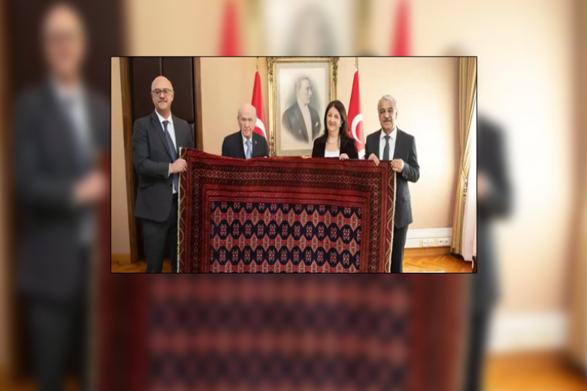 "12 Aralık 2025 tarihinde DEM Parti heyeti Meclis’te bizleri ziyaret ettiklerinde, kurucu önder Abdullah Öcalan’ın Şanlıurfa’da özel olarak dokuttuğu bir kilimi bize hediye etti. Kendisine Türk ve Kürt birliği ile kardeşliği konusundaki samimiyeti için teşekkür ediyorum. Bunu memnuniyetle karşıladım ve bizi ziyaret eden heyete şunu söyledim; “Kültürümüzde her kilimin bir ismi vardır, bu kilime de 27 Şubat 2025 Barış ve Demokrasi Kilimi adını veriyorum.
