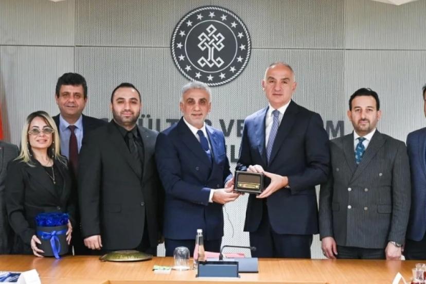 Radyo ve Televizyon Yayıncıları Meslek Birliği Yönetim Kurulu Başkanı Vedat Gündoğan ile yönetim kurulu üyeleri, Kültür ve Turizm Bakanı Mehmet Nuri Ersoy’u makamında ziyaret etti.