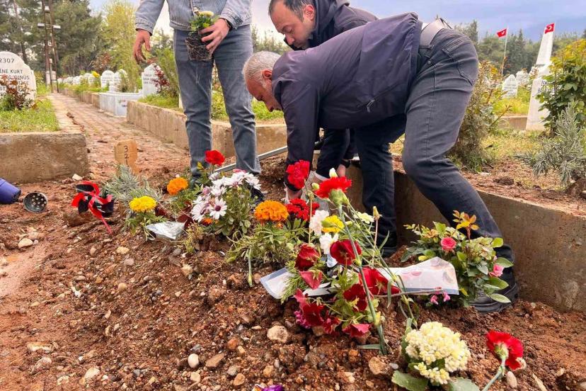 Kahramanmaraş’taki okul saldırısında hayatını kaybederek Şeyh Adil Mezarlığı’nda yan yana defnedilen çocukların mezarına yakınlarının ziyaretleri sürüyor. Saldırıda hayatını kaybeden Kerem Erdem Güngör’ün eniştesi Durmuş Koca ve yakınları mezar başında dua edip, mezara çiçekler dikti.