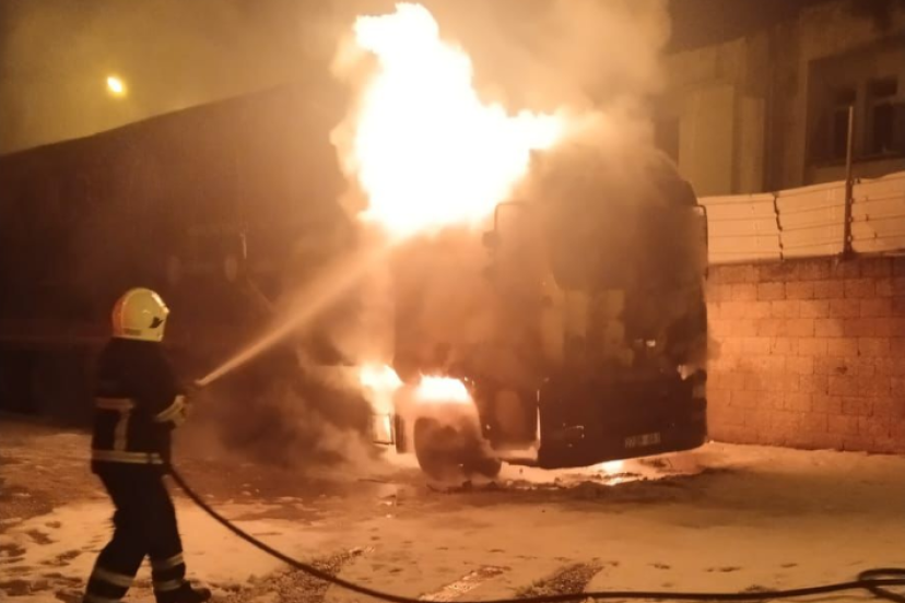TIR yangını, ilçeye bağlı Karşıyaka Mahallesi’nde yaşandı. Henüz belirlenemeyen bir nedenle başlayan yangın, kısa sürede büyüyerek garaj alanını sardı.