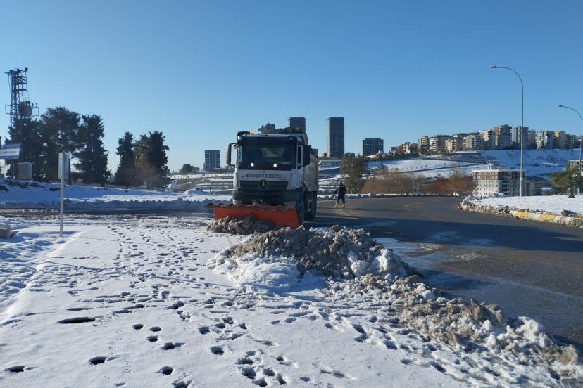 Şanlıurfa Büyükşehir Belediye Başkanı Mehmet Kasım Gülpınar’ın talimatları doğrultusunda yürütülen karla mücadele çalışmaları kapsamında, şehir merkezinde başta ana arterler olmak üzere caddeler, kavşaklar ve yaya yoğunluğunun fazla olduğu bölgeler kısa sürede ulaşıma açıldı. Sabahın ilk ışıklarından gece geç saatlere kadar sahada olan ekipler; kar küreme, tuzlama ve buzlanmaya karşı önleyici çalışmalarla şehir içi ulaşımın güvenliğini kesintisiz şekilde sağladı.
