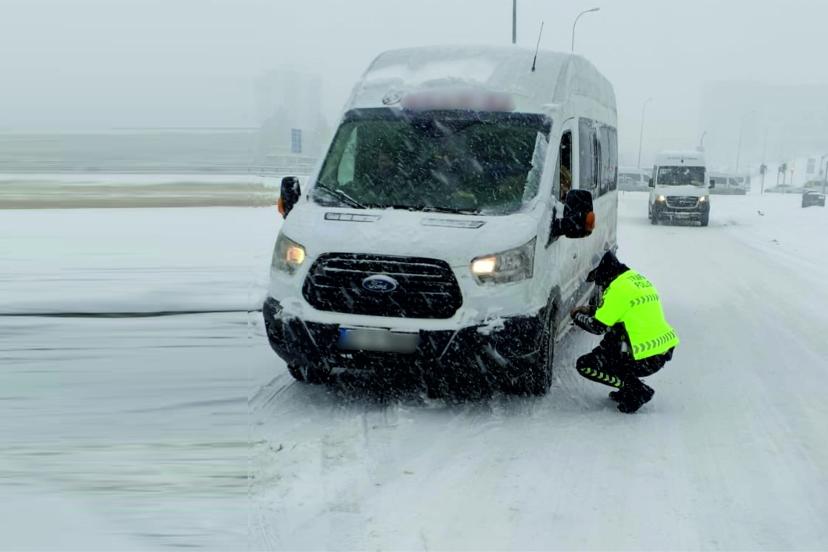 Kent merkezi ve şehirlerarası yollarda kış lastiği denetimleri de sıklaştırıldı. Denetimler sırasında trafik ekipleri yavaş gidilmesi, hatalı sollama yapılmaması ve takip mesafesine dikkat edilmesi yönünde sık sık uyarıldı.