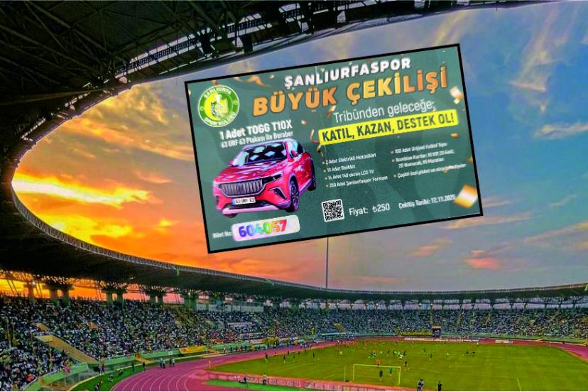 Şanlıurfaspor büyük çekilişte 63 URF 63 plakası ile beraber 1 adet TOGG, T10X, 2 adet elektrikli motosiklet, 10 bisiklet, 14 adet 140 ekran LCD TV, 250 adet Şanlıurfaspor forması, 100 adet orjinal futbol topu, kombine kartlar 10 VIP, 20 Gold, 20 numaralı, 63 maraton, çeşitli özel paket ve sürpriz hediyeler dağıtılacak.