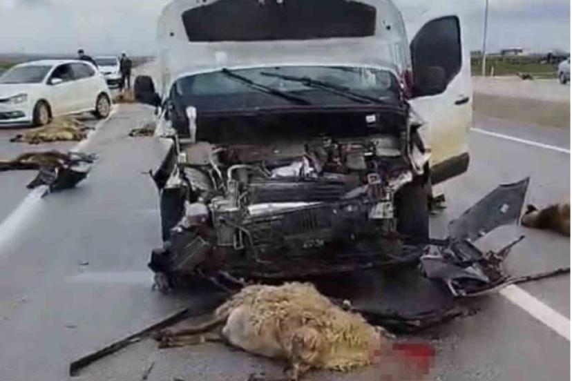 Siverek’te araç sürüye daldı: Hayvanlar telef oldu