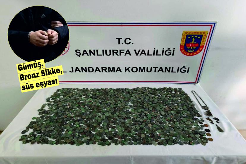 Şanlıurfa'nın Ceylanpınar ilçesinde takibe alınan tarihi eser kaçakçısı bol miktarda gümüş, bronz sikke ve süs eşyalarıyla birlikte yakalandı.