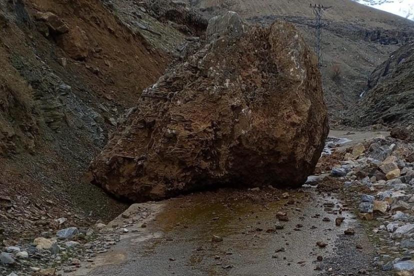 Yamaçtan düşen kaya, köy yolunu ulaşıma kapattı